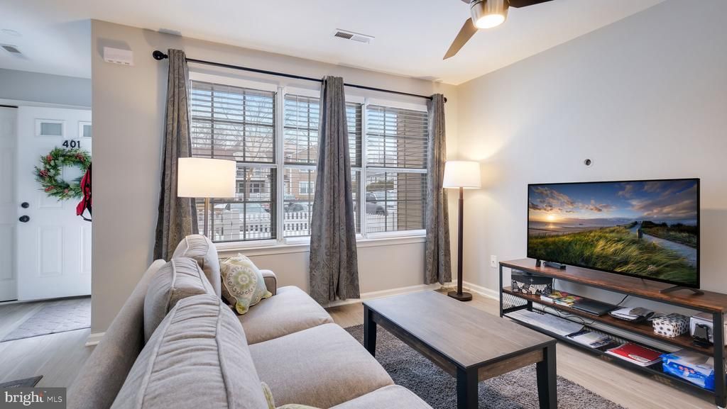 Welcome to 401 Ferris Lane in sought-after Carousel Pointe in New Britain, PA! Enjoy easy first-floor living in this beautifully updated 2-bedroom, 1-bath condo tucked at the back of the community, offering a quiet and peaceful setting. Enter through a charming white picket fence to your own private patio—perfect for relaxing outdoors or enjoying your morning coffee. Inside, a spacious living and dining combination features a clean, updated space with neutral tones, a newer ceiling fan, and stylish vinyl plank flooring. The bright kitchen shines with granite countertops, white cabinetry, stainless steel appliances, and updated flooring plus an enlarged breakfast bar ideal for casual dining or entertaining. Down the hall, you’ll find a large hallway closet for extra storage, a conveniently located stackable washer and dryer, and an updated full bath with a clean, refreshed feel. Both bedrooms offer a bright and inviting atmosphere with newer ceiling fans and brand-new carpeting. The primary bedroom features a generous walk-in closet, creating a comfortable retreat with ample storage, while the second bedroom is perfect for guests, a home office, or additional living space. Carousel Pointe offers a serene, well-maintained setting just 15 minutes from historic Doylestown Borough, under a mile from the Chalfont SEPTA Station, and close to Routes 202, 309, and 611, shopping, and dining. Don’t miss your chance to own this exceptional condo—schedule your private showing today at 401 Ferris Lane!